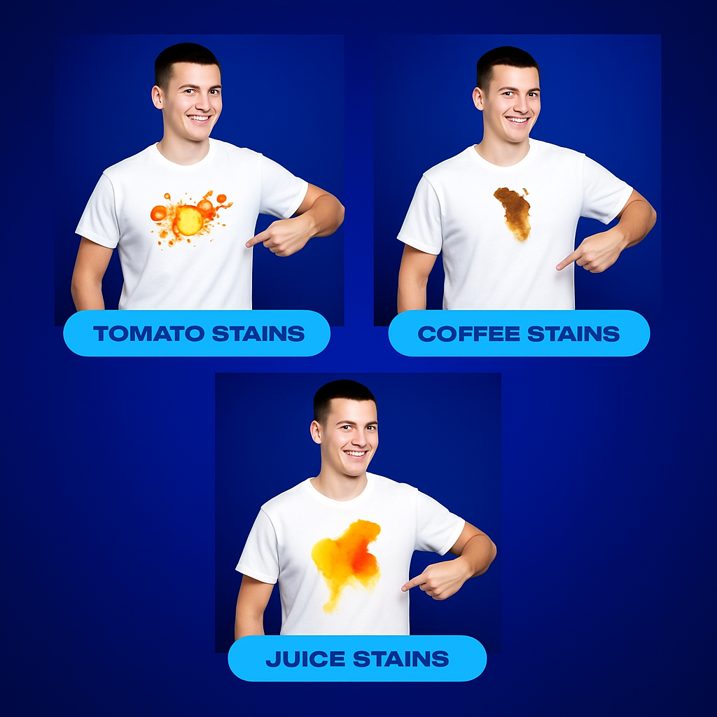 ✅ Instant Results – Removes tough stains like oil, coffee, ink, sweat, food, and more in seconds!